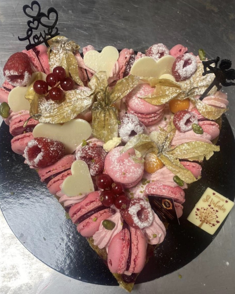 Pâte sablée, crème d'amande à la pistache, macaron Framboise le tout entrelacé de chantilly framboise , dessert pour 2 personnes à partagé